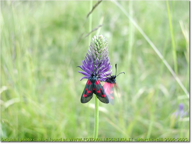 Fotografie: Farfalla zygaena filipendulae su fiore di phiteuma - Crocefieschi&Vobbia - <2001 - Fiori&Fauna - Estate - Olympus Camedia 3000