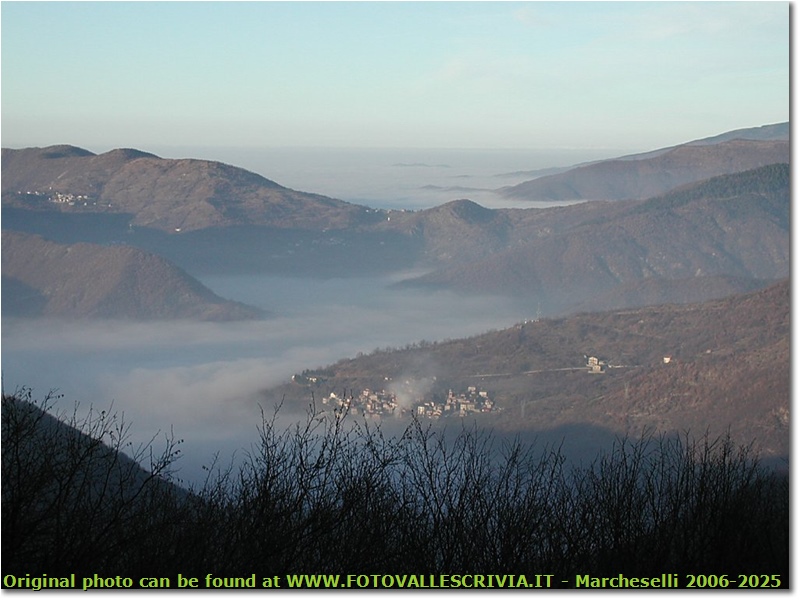 Fotografie: La nebbia lambisce la frazione di Noceto, Val Vobbia - Crocefieschi&Vobbia - 2005 - Panorami - Inverno - Olympus Camedia 3000