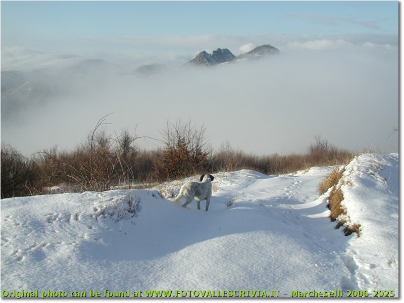 Fotografie: M. Reopasso innevato emerge dalle nebbie - Crocefieschi&Vobbia - 2002 - Panorami - Inverno - Olympus Camedia 3000
