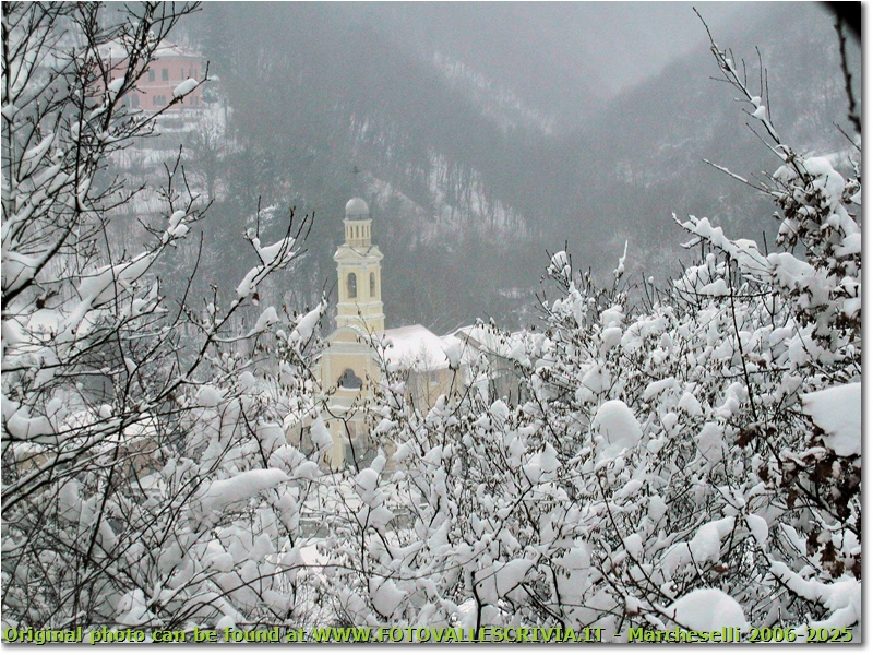 Fotografie: La chiesa di San Bartolomeo sotto la neve - Savignone - 2006 - Boschi - Inverno - Olympus Camedia 3000