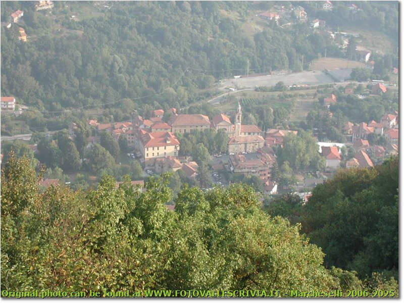 Fotografie: La piazza di Savignone ripresa verso sera a fine agosto dal M. Pianetto - Savignone - <2001 - Paesi - Estate - Olympus Camedia 3000