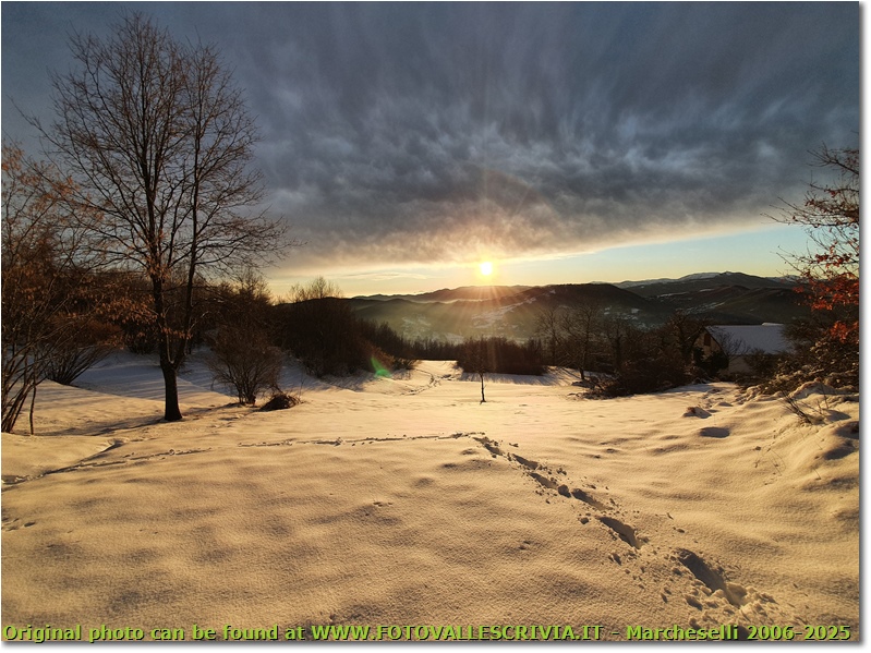 Fotografie: Ombre del tramonto sui prati innevati a Montemaggio - Savignone - 2022 - Panorami - Inverno - Olympus OM-D E-M10 Mark III