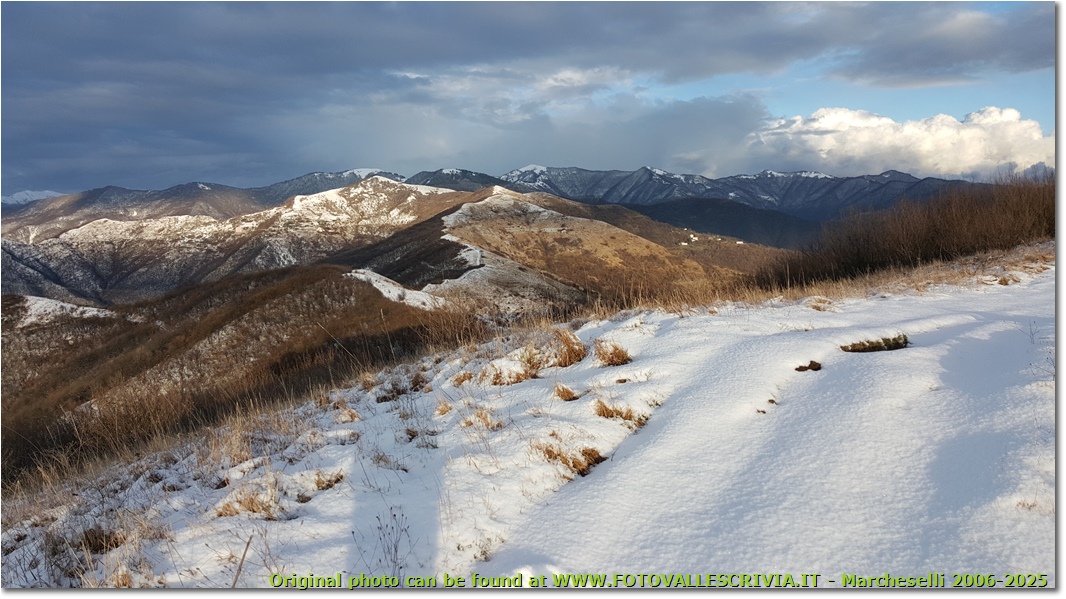 Diverso innevamento tra Valbrevenna (dx) e Val Vobbia (sx)