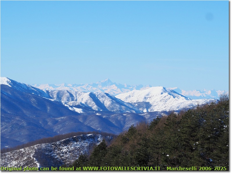 Pineta del Proventino, Monte Tobbio e Monviso sotto la neve